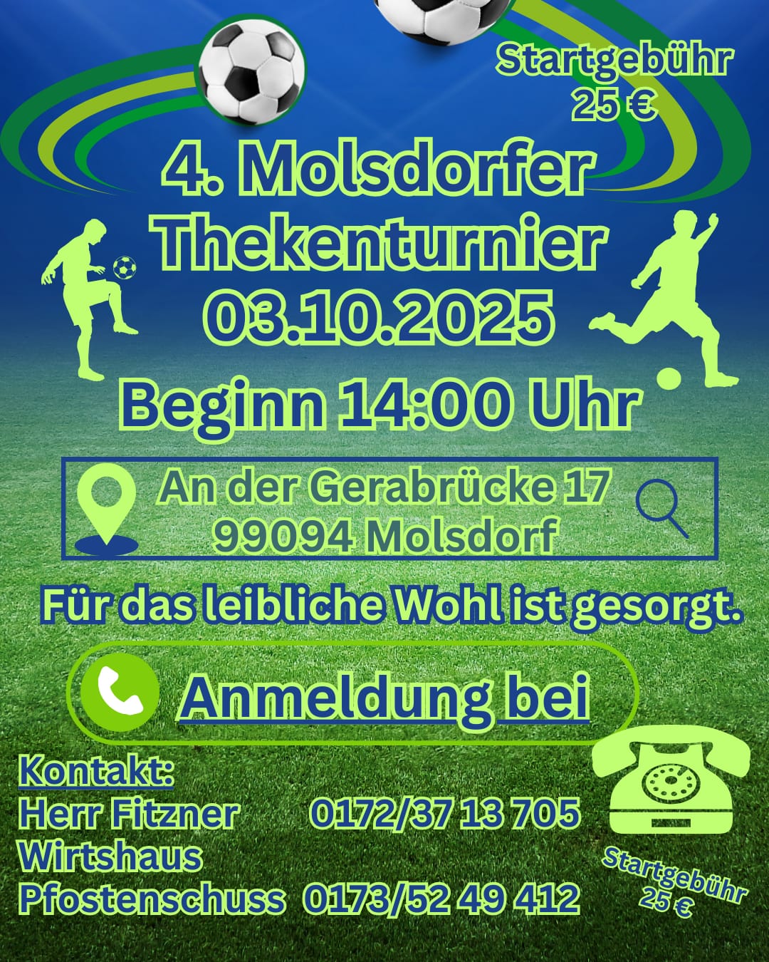 Der Molsdorfer Sportverein 57 e.V., Abteilung Fußball lädt zum Kleinfeld Turnier ein.
